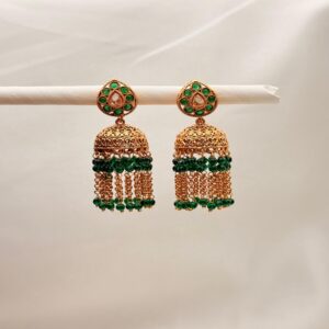 ANTIQUE GOLD-TONE GREEN KEMP JHUMKA EARRINGS