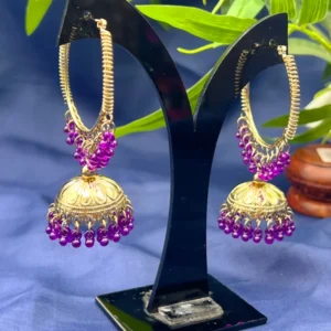PURPLE BEADED JHUMKA EARRINGS HE-507