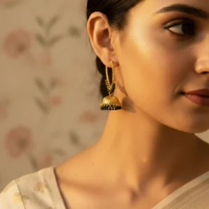 • OXIDIZED JHUMKA HOOPS WITH GREEN STONES