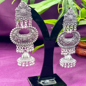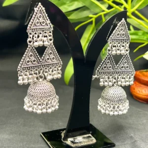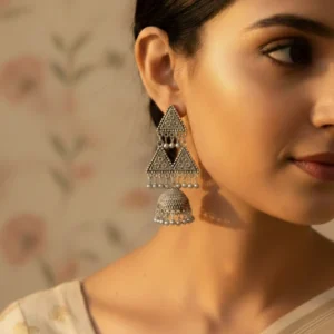 OXIDIZED SILVER TRIANGULAR JHUMKA EARRINGS ER-504