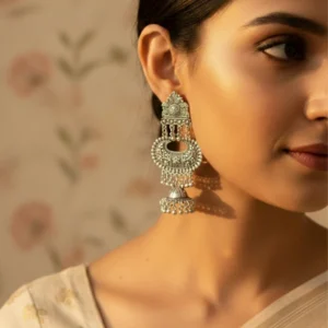 MAJESTIC CASCADE OXIDIZED MEGA JHUMKAS E-142