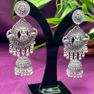 OXIDIZED SILVER LAKSHMI JHUMKA EARRINGS ER-505