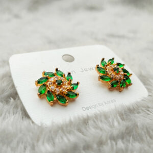 GOLD-TONE EMERALD & WHITE CRYSTAL STUDS E-177
