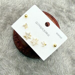 GOLDEN CLOVERLEAF TRIO STUDS (3-Pair Combo Set) E-193