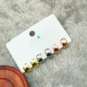 SLEEK POLISHED TRIPLE-TONE COMBO SET STUDS E-182