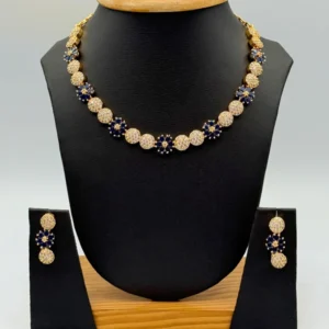 SAPPHIRE BLUE GOLD AD NECKLACE SET N-375