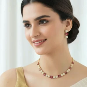 RUBY BLOOM PEARL STRING NECKLACE SET