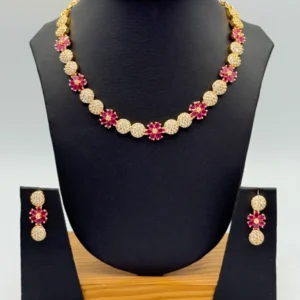 RUBY RED ROSE GOLD AD NECKLACE SET N-380