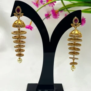 MULTI-TIER PEARL JHUMKA EARRINGS E-516