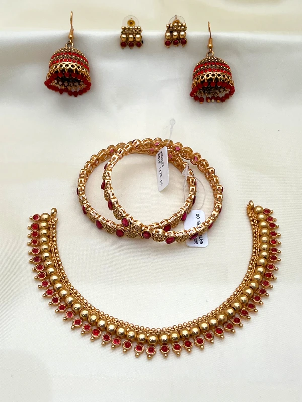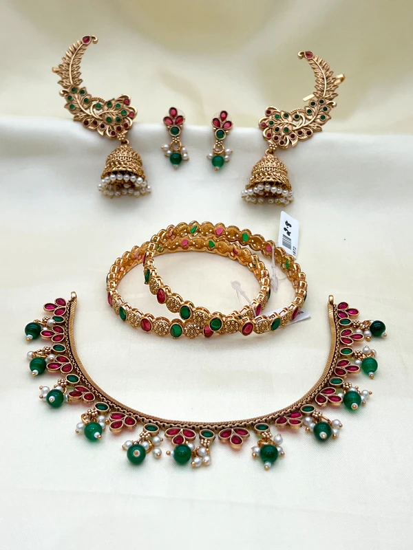 - Full set: necklace + 2 bangles (2.8) + jhumkas + studs
