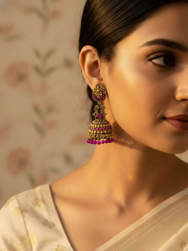 Bring home Goddess Lakshmi’s divine grace in this antique treasure — add these temple jhumkas to your collection today and shine with regal prosperity! 🕉️✨