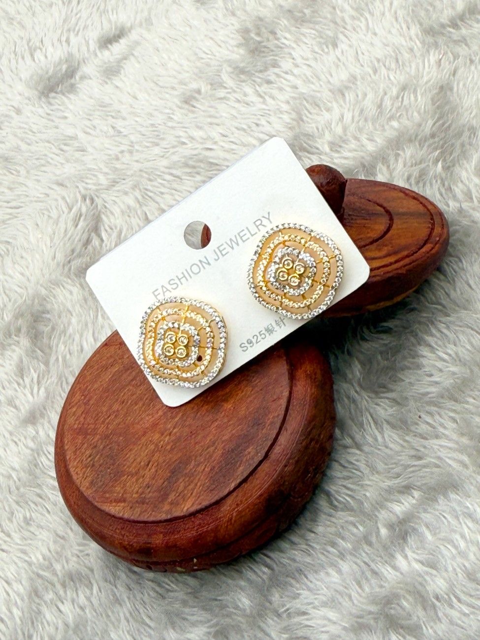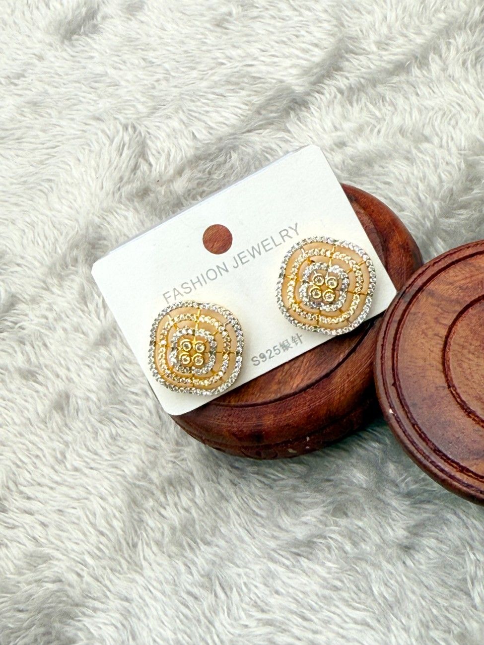 The design features concentric square frames, each meticulously set with sparkling White Crystal (Cubic Zirconia) stones in a brilliant pave setting. The intricate detailing gives them a textured, antique-inspired appearance while maintaining a contemporary silhouette.