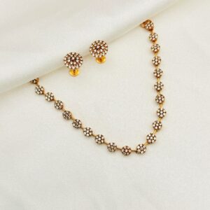 The design showcases a fine double-chain structure. one chain features small, polished gold beads, while the central focus is an elegant link of geometric motifs, including dazzling white cubic zirconia (cz) stones.