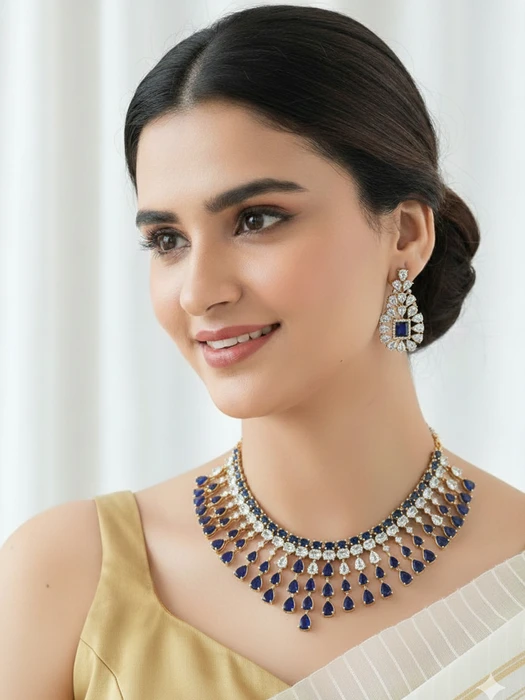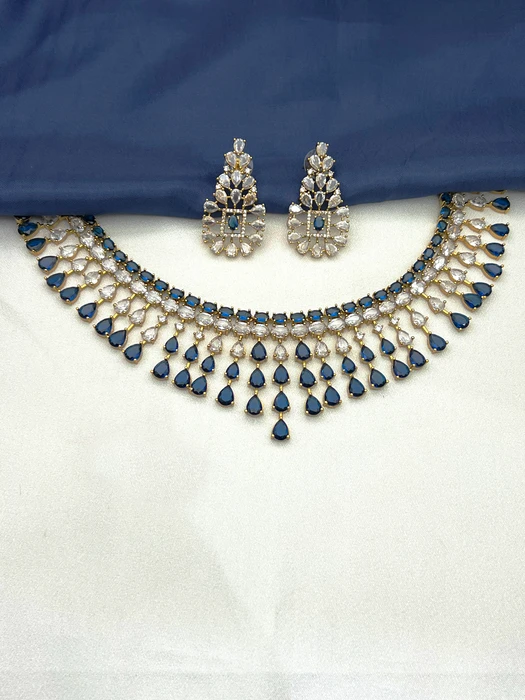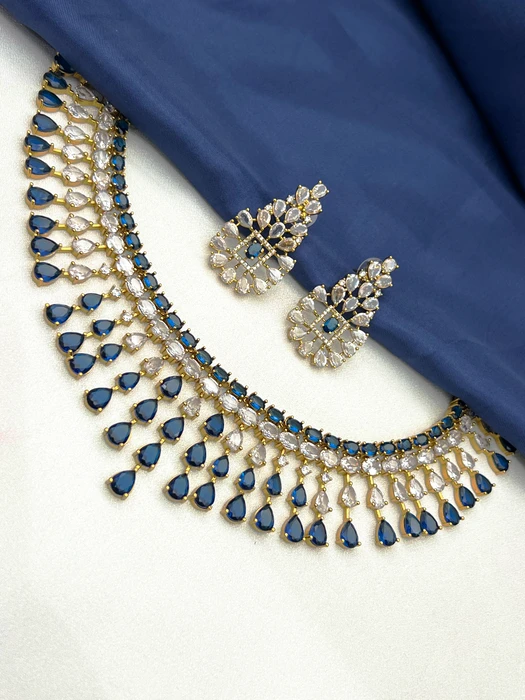 Steal the spotlight with this dazzling Blue AD Stone Necklace Set — the ultimate blend of modern sparkle and timeless elegance!