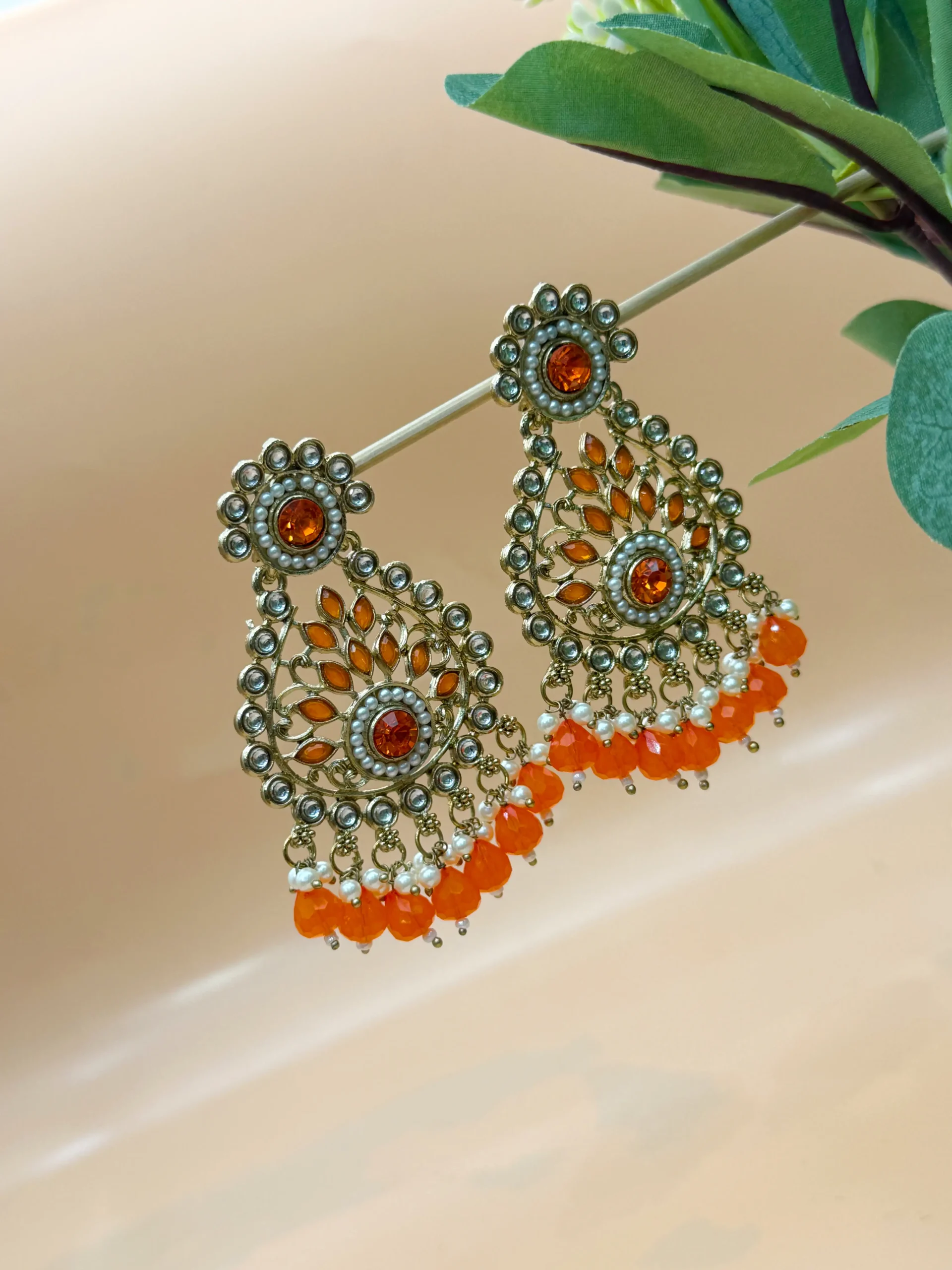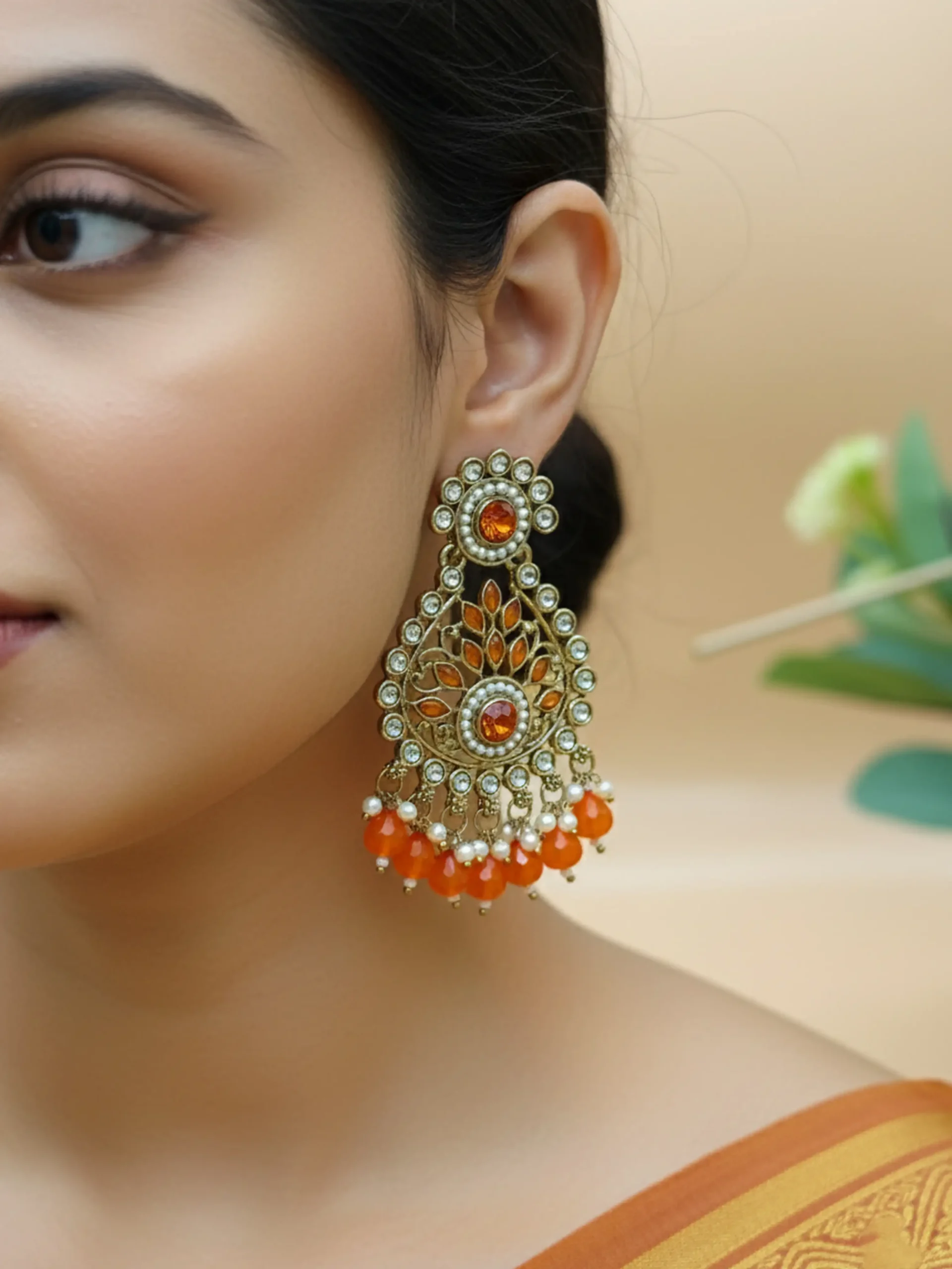Illuminate any occasion with The Marigold Blaze Earrings, a mesmerizing pair of ethnic drop earrings. These attractive and eye-catching earrings feature a rich antique gold-tone setting crafted with beautiful filigree and openwork, giving them a classic, heirloom feel.