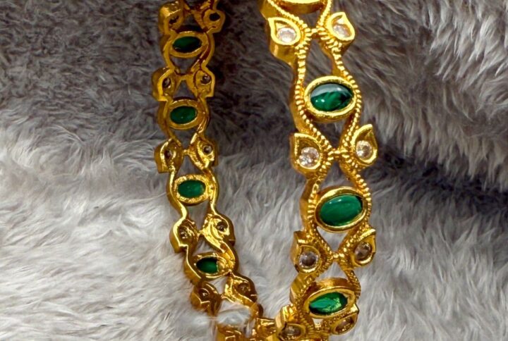 Enhance your jewelry collection with the Emerald Dew Green Stone Gold-Plated Necklace Set, a stunning piece featuring vibrant green stones set on a durable gold-plated chain. Each cluster of green gemstones is intricately designe