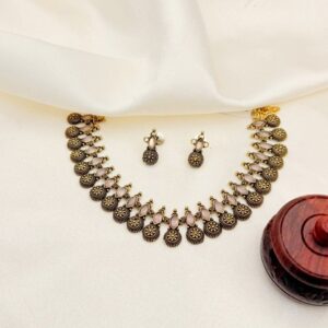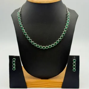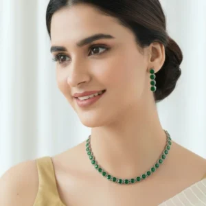 Add a royal touch to your look with the Emerald Ruby Royal Necklace Set. Crafted with elegant gold-toned details, this exquisite necklace features alternating ruby-red and emerald-green stones that radiate sophistication and tradition. The intricate floral accents and matching earrings make it a perfect choice for weddings, festive occasions, and cultural celebrations. This timeless design beautifully blends classic charm with luxurious allure a must-have for every jewelry lover’s collection.