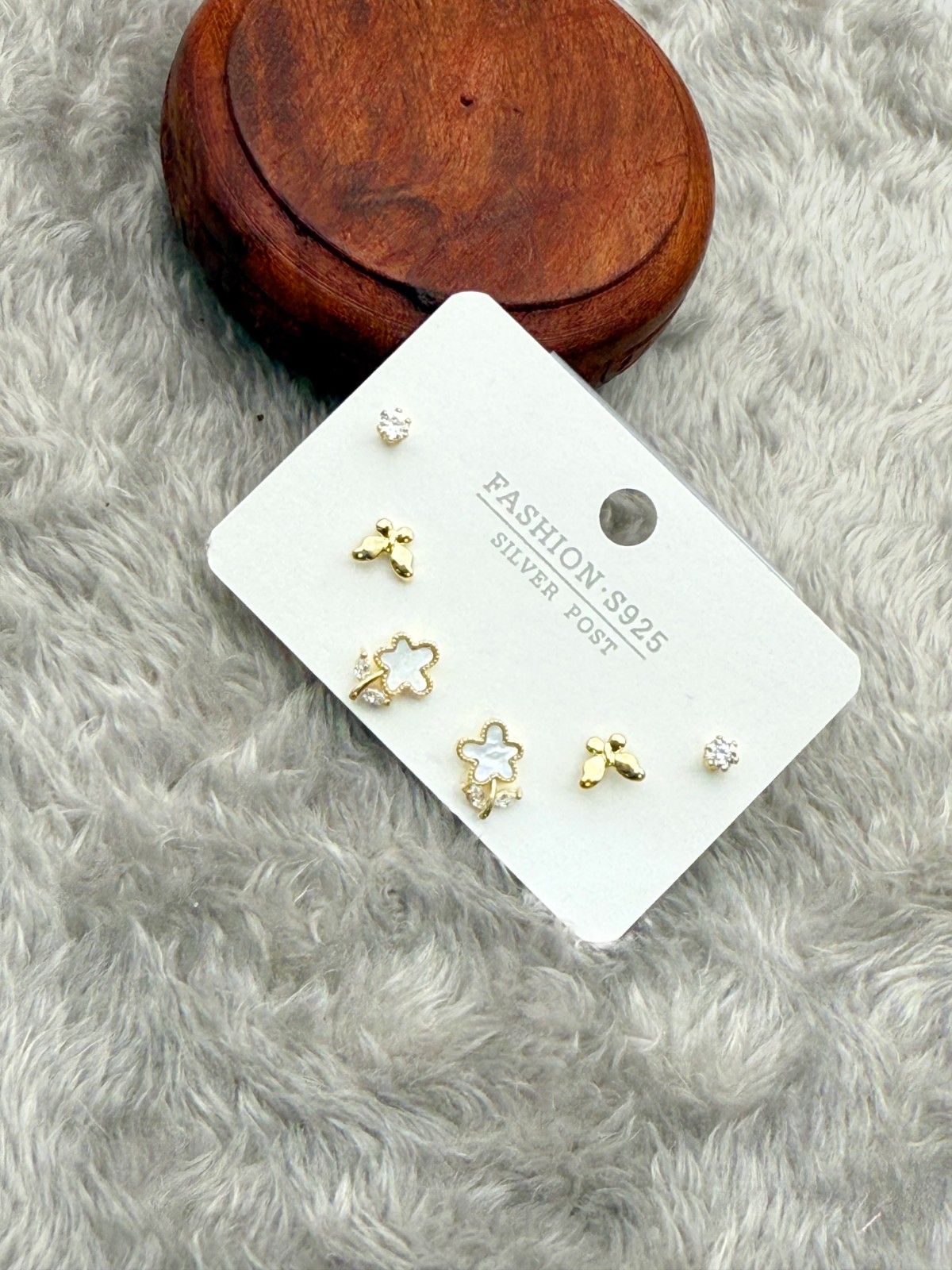 This charming 3-pair combo set is perfect for creating a delicate, curated ear stack with a whimsical touch. All studs are crafted in a bright Gold Tone and secured with an Silver Post for superior comfort.