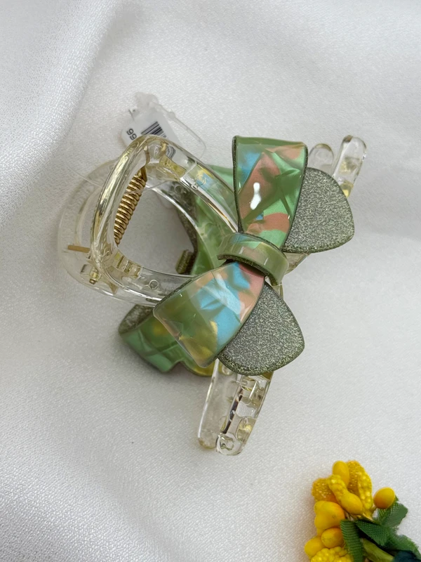 Glint Claw: Dazzling glitter green hair clutcher with iridescent finish. Secure and stylish for all occasions.