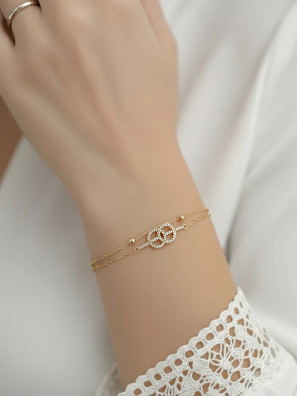 Elevate your everyday elegance with this enchanting Gold-Tone Crystal Interlock Bracelet. Two graceful interlocking circles, pavé-set with radiant crystals, catch and reflect light with every gesture, creating a subtle yet head-turning shimmer. The delicate chain is accented with tiny gold-tone beads, offering a perfect balance of modern sophistication and feminine charm.
