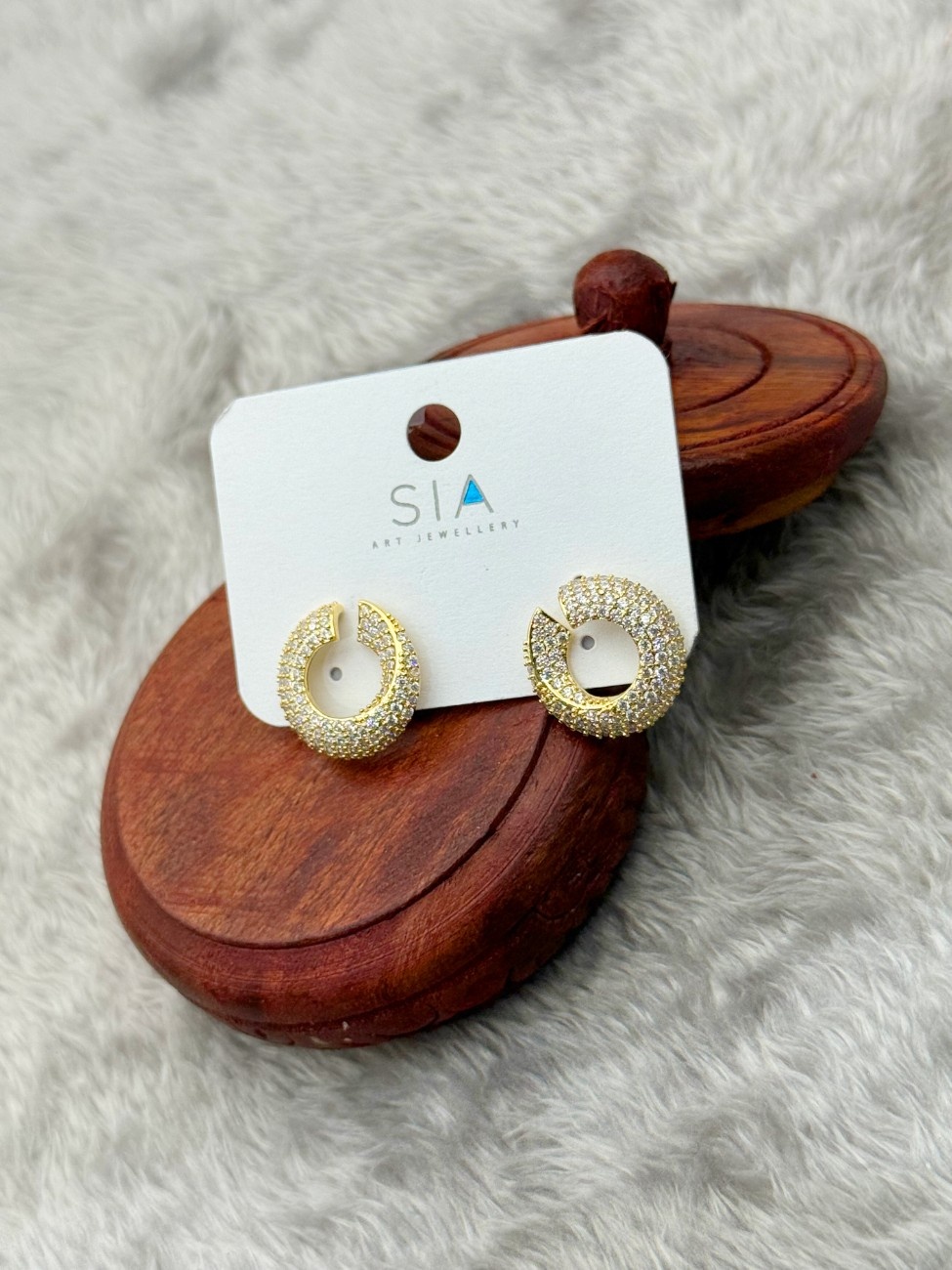 These attractive and eye-catching stud earrings feature a mesmerizing floral swirl design that instantly elevates your look. Crafted in a brilliant gold tone, the piece is set with vibrant, Emerald Green stones that spiral outward like lush