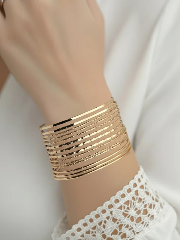 Make every moment shimmer. This gold-tone multi-layer cuff bangle isn’t just jewellery – it’s your new signature of timeless glamour.