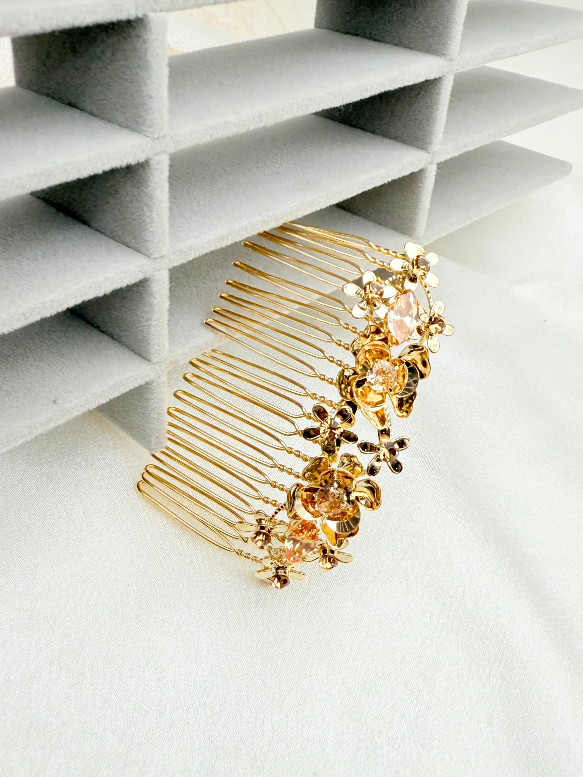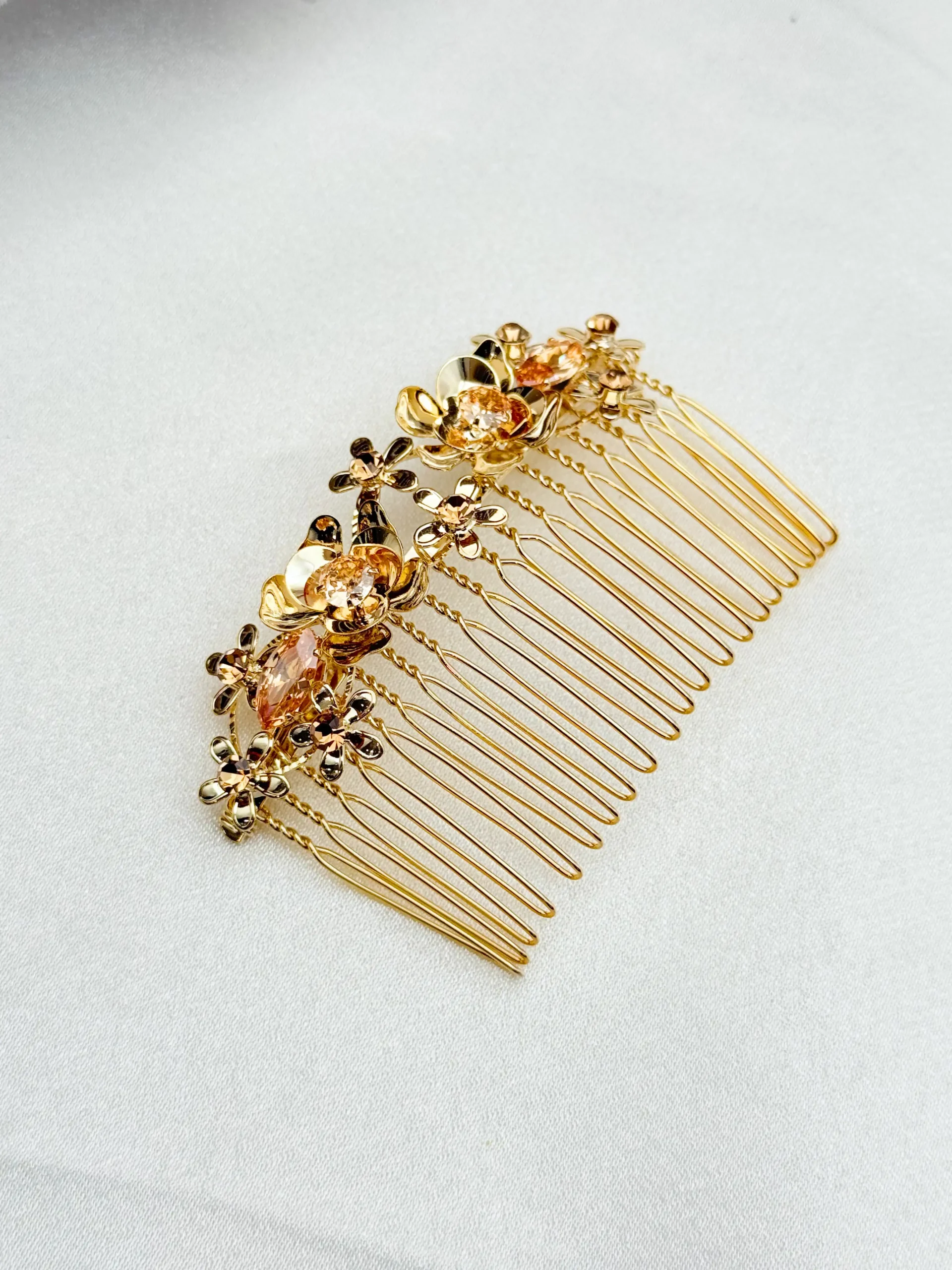 HAIR DECORATION: Intricate Gold Flower & Crystal Comb