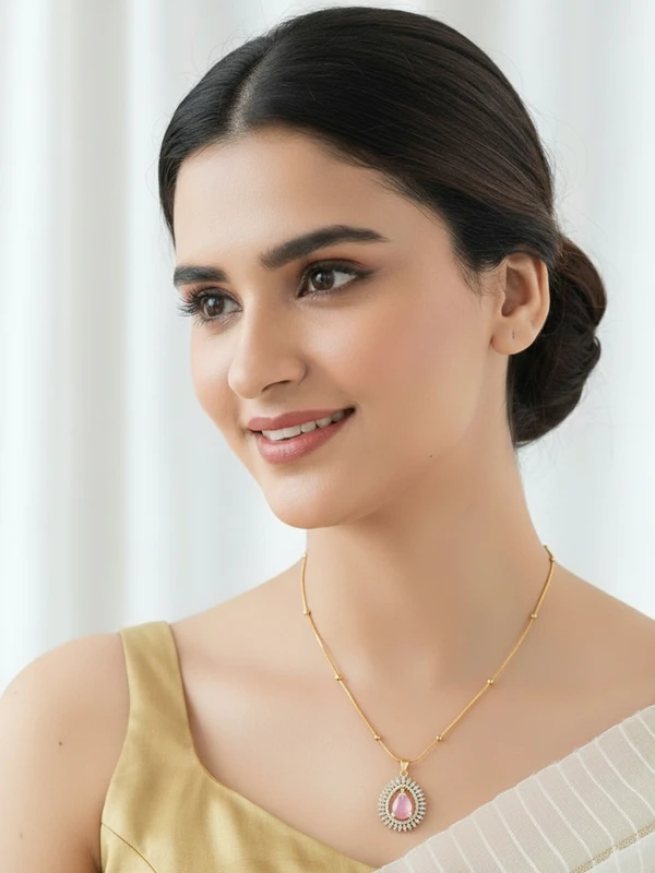 Your everyday pretty necklace is here. Grab this pink AD pendant now and glow with soft luxury.