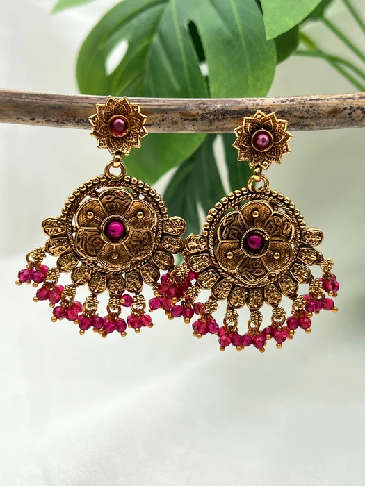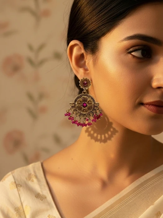 The warm antique gold-tone finish radiates luxurious glow, making these lightweight earrings the perfect companion for sarees, lehengas, bridal attire, anarkalis, or festive outfits. Ideal for weddings, Diwali, Navratri, or any occasion where you want to feel effortlessly graceful, romantic, and head-turning.