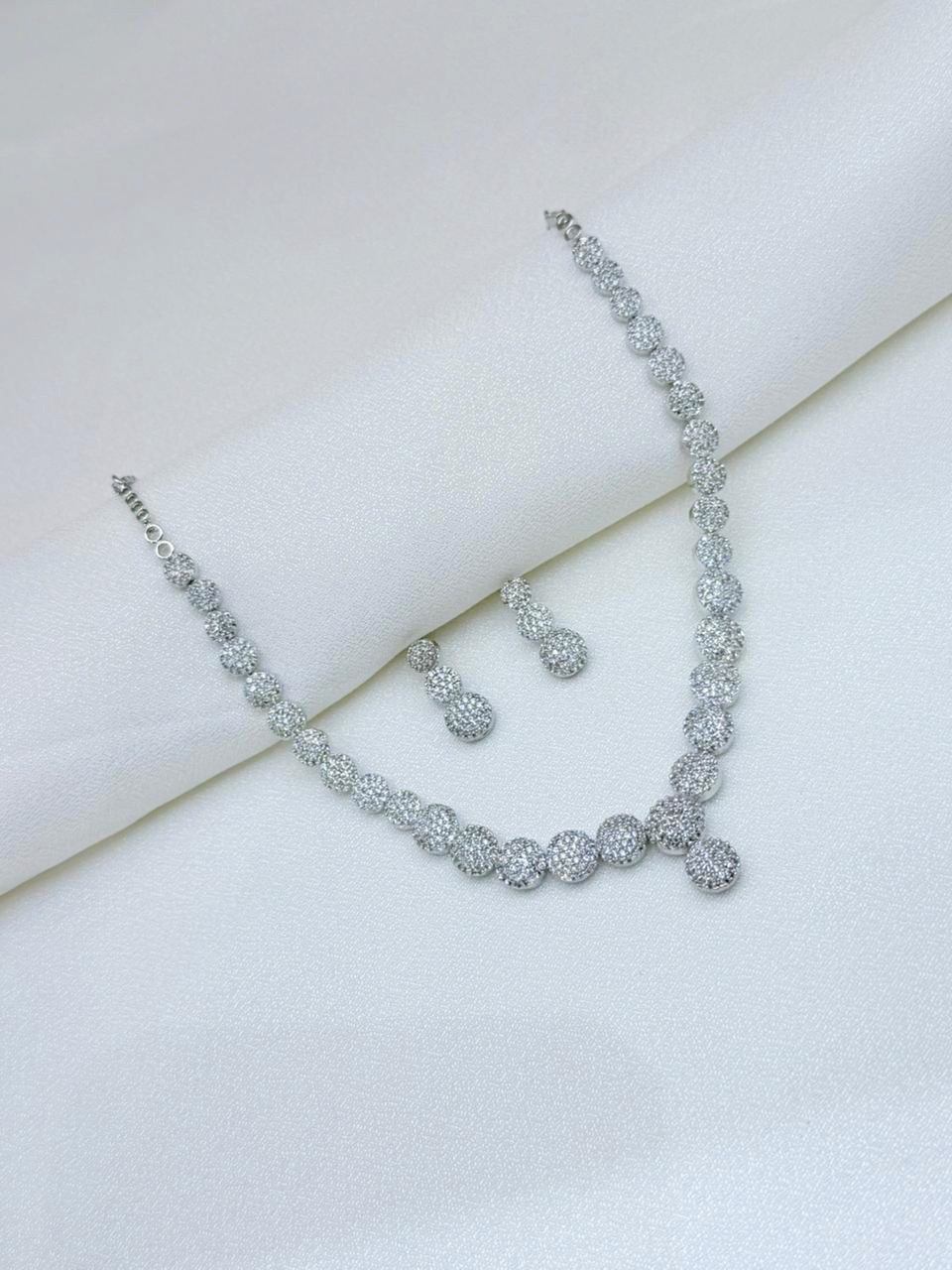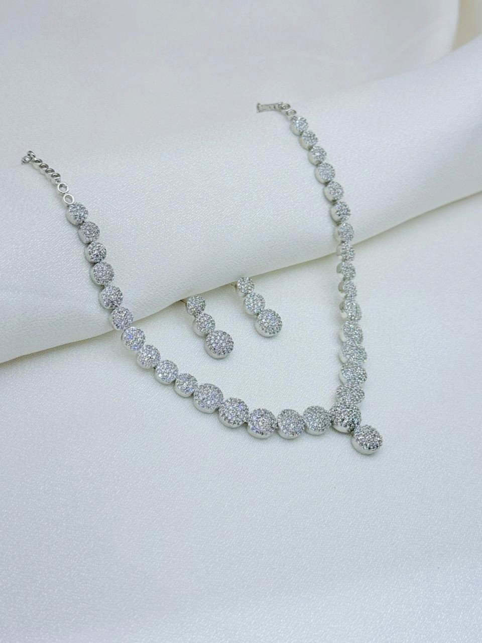This exquisite jewelry set embodies contemporary glamour and classic elegance, featuring a sleek silver-tone finish completely adorned with sparkling clear crystals. Designed to capture and reflect light with every movement, this set offers a luxurious, sophisticated statement perfect for illuminating any occasion.