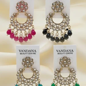 ₹195.00(0)Choose your shade: White Crystal variant of our bestselling 4-Pair Gold-Tone Chandelier Earrings Combo – radiant, regal and ready to steal the spotlight. -
