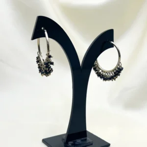 ₹175.00(0)Striking gold-tone hoop earrings dripping with glossy black bead clusters. Effortless edgy glamour that commands attention. -