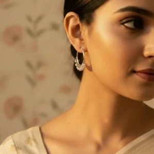 ₹168.00(0)Stunning gold-tone bali hoops loaded with vibrant ruby-red bead clusters – perfect ethnic statement with non-stop movement and shine. -