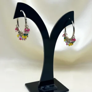 ₹168.00(0)Vibrant gold-tone hoop earrings bursting with rainbow multicolor beads. Playful boho-chic sparkle that instantly brightens every outfit. -