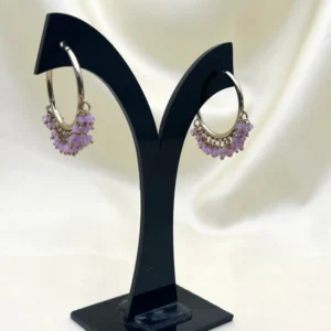 ₹168.00(0)Regal gold-tone hoop earrings with lush purple bead clusters. A touch of royal elegance that sways beautifully with every move. -
